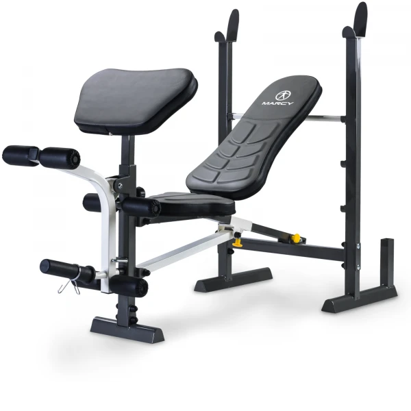 De trainingsbank is in te stellen voor verschillende maten en voor het uitvoeren van verschillende oefeningen, zowel in zittende positie als in hellingshoek. Een ander kenmerk van deze halterbank is het opvouwbare ontwerp, dat met behulp van het innovatieve vouwmechanisme tot de helft kan worden ingeklapt. Al met al biedt de Marcy halterbank optimale stabiliteit door het slijtvaste stalen frame en voelt robuust en veilig aan tijdens de training.